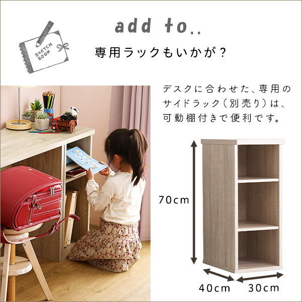 ●デスクのサイドにはランドセルやバッグが掛けれるフック付きです!