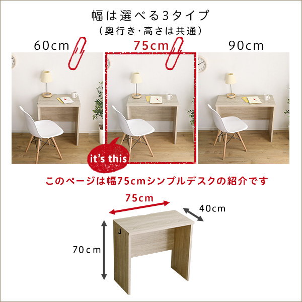 ●子どもから大人まで使えるリビングに合うシンプルデスク75cm幅!