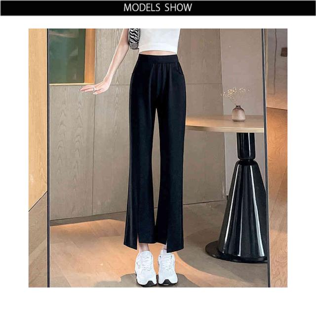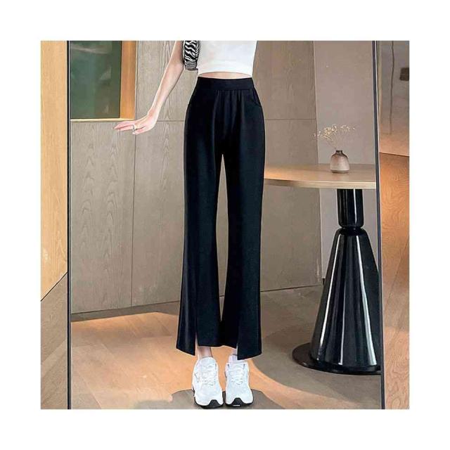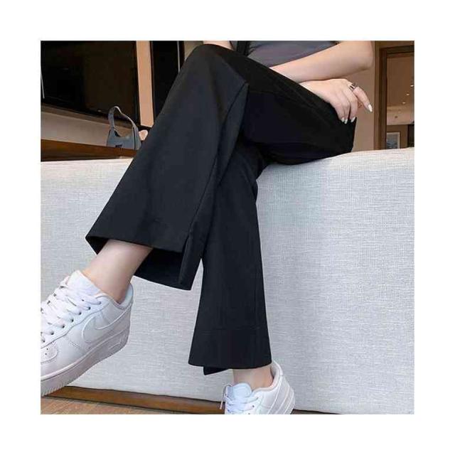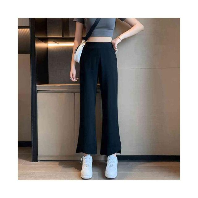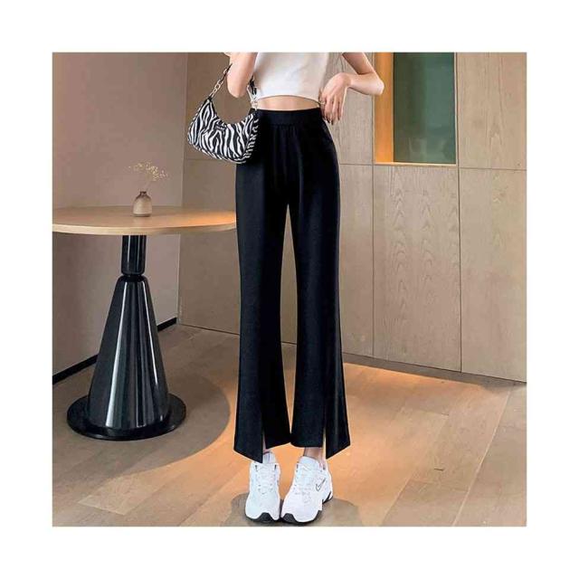 ロンパンツ 春夏 ワイドパンツ レディース 九分丈 ストレートパンツ フレアパンツ スリット入り パンツ ゆったり スポーツパンツ ハイウエスト フレア ロング丈 ワイド 送料無料 カジュアルパンツ ボトムス 大きいサイズ