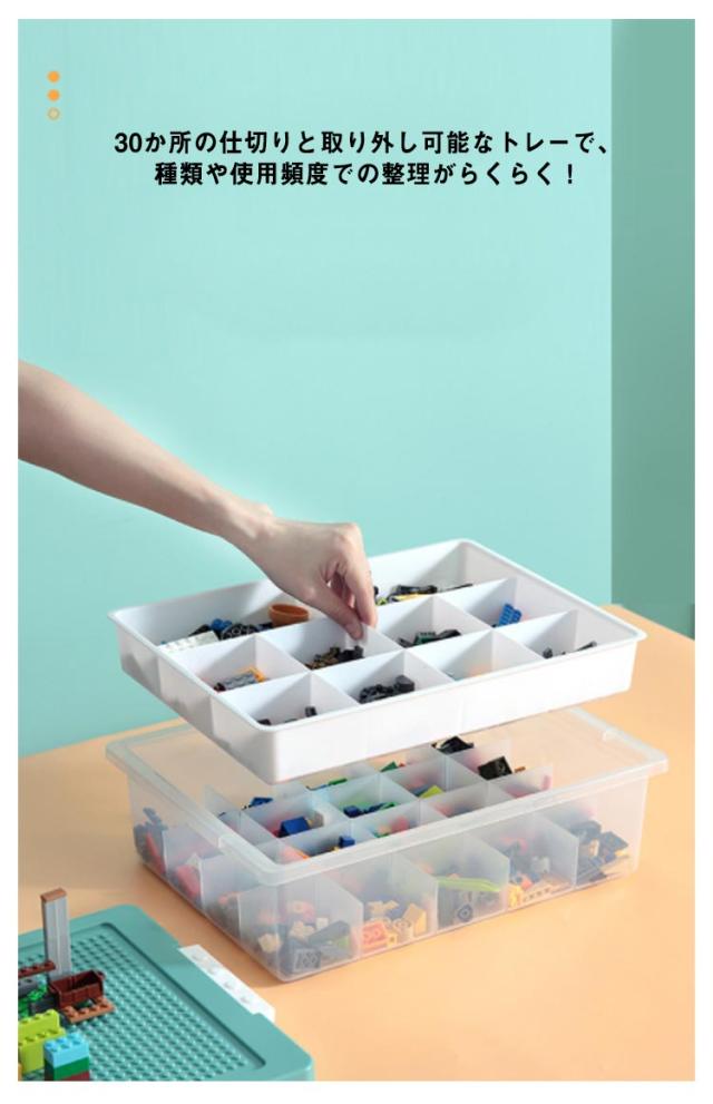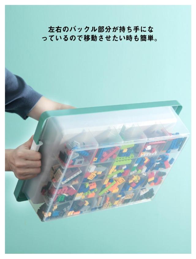 | 散らばりがちなブロックなどの小物を整理・収納! 30か所の仕切りと取り外し可能なトレーで、種類や使用頻度での整理がらくらく! 同シリーズでスタックが可能。たくさんの省スペースで重ねて収納しておけます。 お子様のブロックはもちろん、ボタンやビーズなどの手芸用品、プラモデルやミニチュアなどの細かいパーツなどの収納に! フタ部分はお子様がブロック遊びに使える凸凹構造になっています。 左右のバックル部分が持ち手になっているので移動させたい時も簡単。 ※対応ブロックは付属していません。 | |