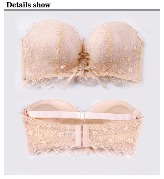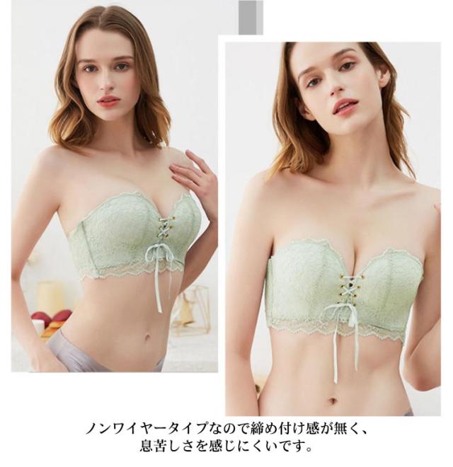| 全5色×4サイズ レースリボンを結んでバストUP♪レースデザイン ストラップレスブラ 柔らかい生地が肌に優しく、ノンワイヤーだから締めつけ感がなく快適です♪ しっかりムダ肉を寄せ、バストをきれいに魅せてくれるストラップレスブラです 4段3連ホックでハミ肉・ワキ肉をホールドして、バストを美しく魅せます! ショルダーストラップが外せるので、チューブトップとして使用したり普通のブラとして着用できます ノンワイヤータイプなので締め付け感が無く、息苦しさを感じにくいです 伸縮性抜群で柔らかい素材を使用しているため、あとが付きにくく快適です | |