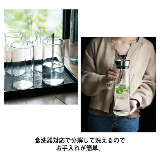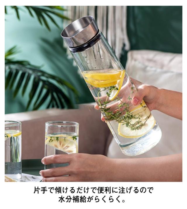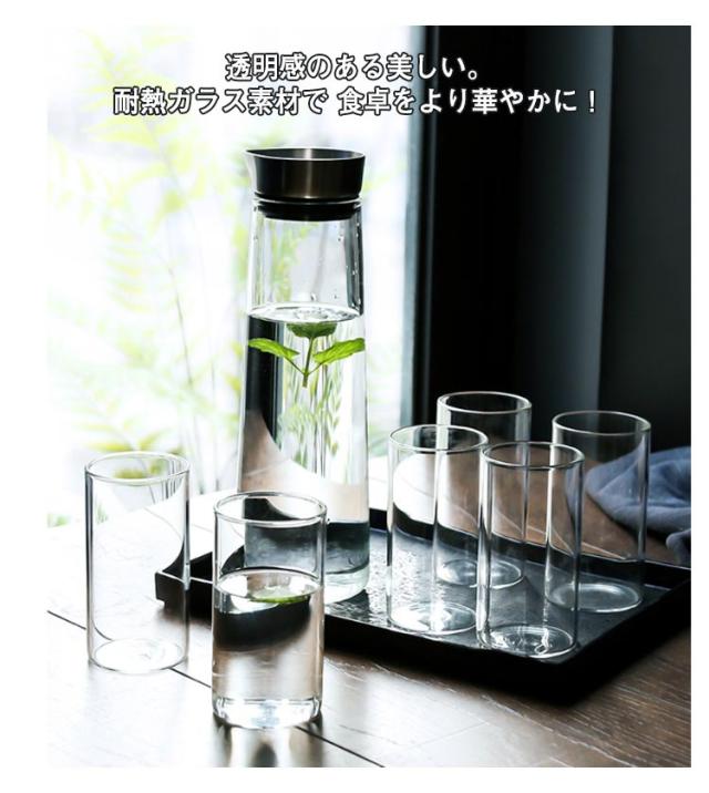 | ガラスピッチャー。麦茶、紅茶、花茶、ハーブティー、工芸茶、ジュース、コーヒーなどを入れます。 透明感のある美しい。耐熱ガラス素材で 食卓をより華やかに! 片手で傾けるだけで便利に注げるので水分補給がらくらく。 パッキンが付いているので、注いでいるときも蓋が落ちません。 食洗器対応で分解して洗えるのでお手入れが簡単。 冷蔵庫のサイドポケットにすっぽり入ります。 温かい飲み物にも冷たい飲み物にも使える耐熱ガラス製のピッチャーです。沸かしたお茶も入れますし、アイスコーヒーも手軽にできて一年中重宝します。 いつものミネラルウォーター、お好みのフルーツや野菜、ミントなどを入れてオリジナルのデトックスウォーター作りにもお使いいただけます。 | |