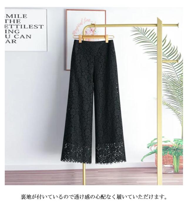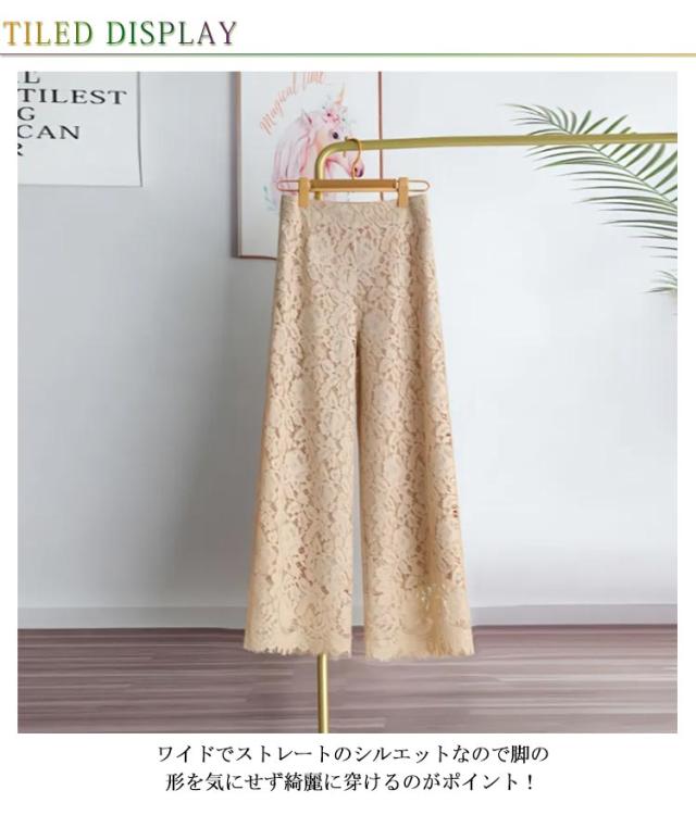 レースパンツ ワイドパンツ レディース 花柄レース 総レース フレアパンツ 9分丈 裏地付き ロングパンツ 長ズボン ワイド ガウチョパンツ ゆったり 大きいサイズ 体型カバー きれいめ レイヤード 重ね着 エレガント かわいい おしゃれ カジュアル 春 夏 秋 送料無料