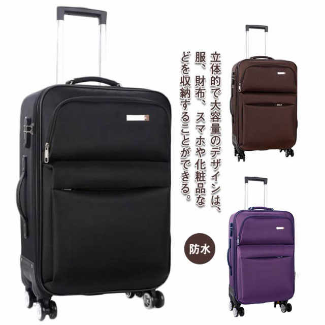 スーツケース キャリーバッグ 機内持ち 布製キャリーケース フロントポケット 機内持ち込み 小型 防水 軽量 フロントオープン トロリーバッグ ハンドル調整 ビジネスケース 拡張可能 旅行 出張用 ビジネス 修学旅行 持ち込み可 黒 360度回転