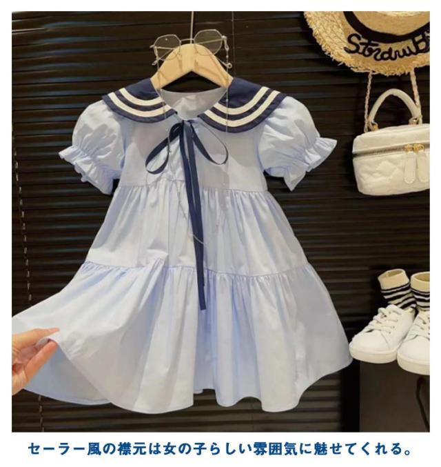 セーラー襟 子供 ワンピース キッズ ワンピース 半袖 マリン風 ワンピース 子供ワンピース 女の子 ワンピース 夏ワンピース 子供ドレス フレアワンピース ベビー ワンピース 子供服 フォーマル ワンピース 演奏会 発表会 入園式 送料無料