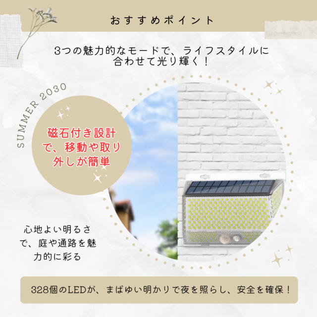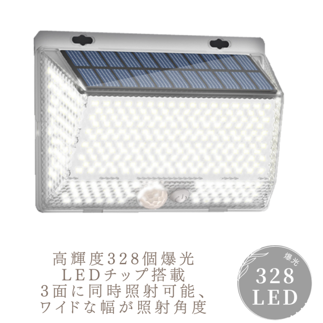 ソーラーライト 屋外 防水 センサーライト ガーデンライト マグネット 磁石 ソーラーセンサーライト 防犯ライト 防災ライト 人感センサーライト 328LED LED3モード太陽光発電 玄関灯 広角 駐車場 明るい 人感センサー