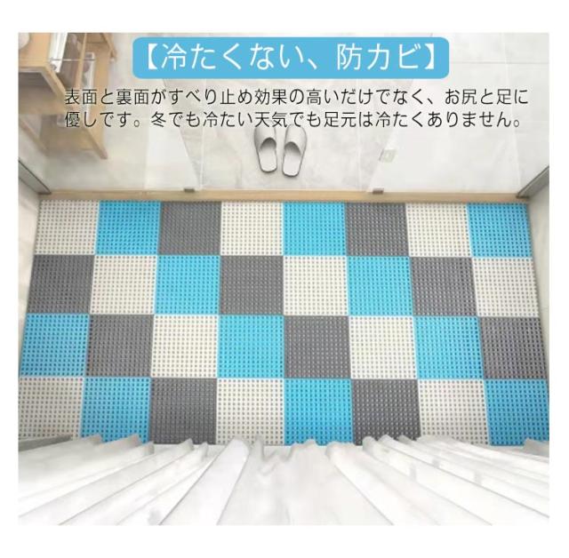 | 【24枚セット】【お風呂 滑り止めマット】【30cm×30cm】【6color】 【家族の安全保護】洗い場の床や浴槽にガッチリと貼りつき、優れた滑り止め性能を発揮、ご家族の安全を守ります、お湯を張った浴槽でも安心して使えます、妊婦、高齢者やお子様の入浴に安心です。 【防カビ・防菌】穴が多くあるので水切れがよく、乾きが速いです。優れた防カビ・抗菌効果、超耐久性があり、常に清潔で安心してご利用頂けます。 【良好な排水】汚れたら洗い流すだけ!水でよく洗い、風通しの良い直射日光の当たらない場所で陰干ししてください。使わない時はクルっと巻いておけばヨシ、移動も楽ちん。 【冷たくない、防カビ】表面と裏面がすべり止め効果の高いだけでなく、お尻と足に優しです。冬でも冷たい天気でも足元は冷たくありません。 【広い適用範囲・DIYマット】浴室を敷き詰めると滑り止め効果抜群!浴室だけでなく、キッチン、玄関、温泉、スパ、ホテル、ジムやベランダの出入り口などの所としてもOKです。柔軟性が強く、任意に折り曲げて変形しにくく、丈夫で長持ちします!浴室などの適用場所の形に合わせて裁断できます。 | |