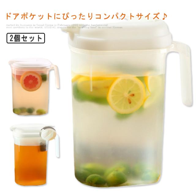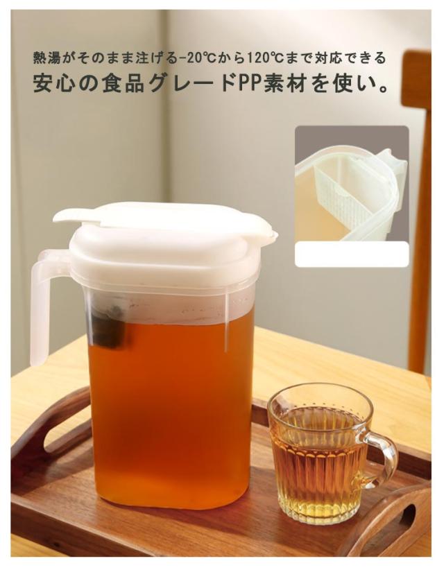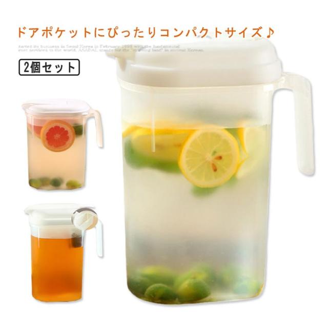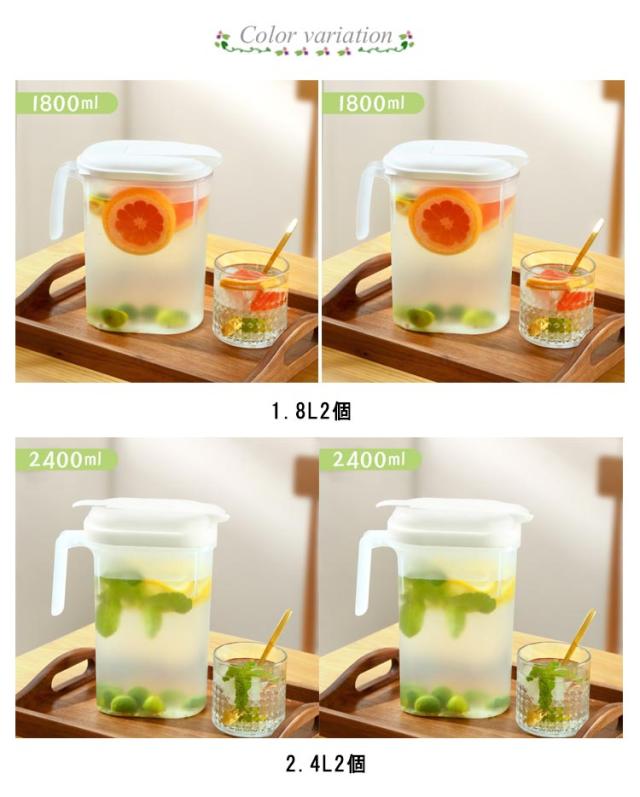 2個セット ピッチャー 1.8L/2.4L 麦茶ポット 耐熱 冷水筒 お茶 ボトル 広口 軽量 コンパクト 冷蔵庫ポケットに入れる ウォーターポット 持ち手付き 麦茶ボトル らくっ茶 大容量 プラスチック 茶こし付き 水差し