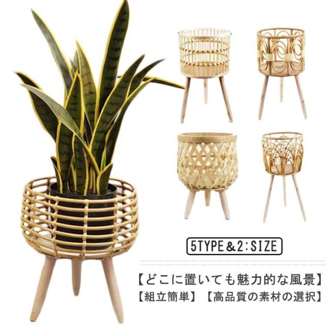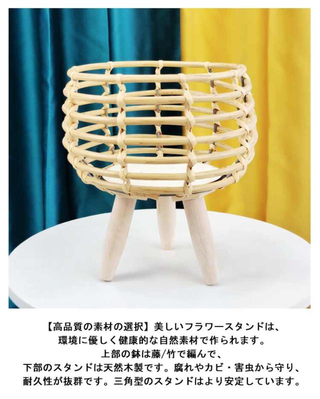 フラワースタンド 木製 おしゃれ プランタースタンド 室内 屋外 花台 鉢置き 鉢スタンド 丸型 籐編み 竹編み プランター台 観葉植物 台 植木鉢 スタンド 鉢 ポット カバー フラワーラック リビング 玄関 多肉植物 花 飾り台 園芸ラック