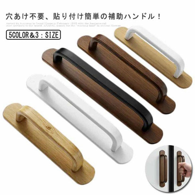 木目調 ドア取っ手 ドアハンドル 扉 ガラス のり付き 強力ドアハンドル 手すり 玄関 てすり ドアノブ 補助ハンドル 穴あけ不要 引き戸 お風呂 浴室 トイレ 頑丈 おしゃれ ナチュラル