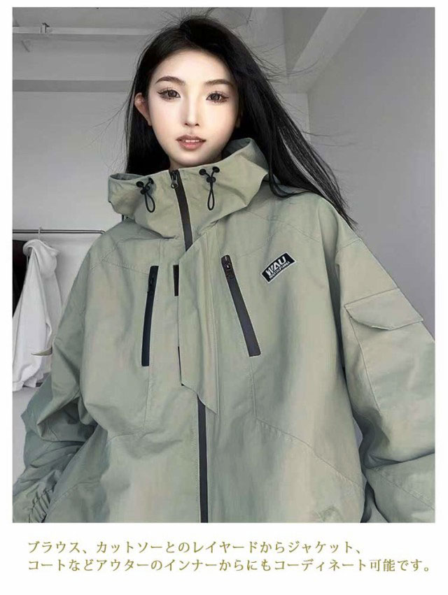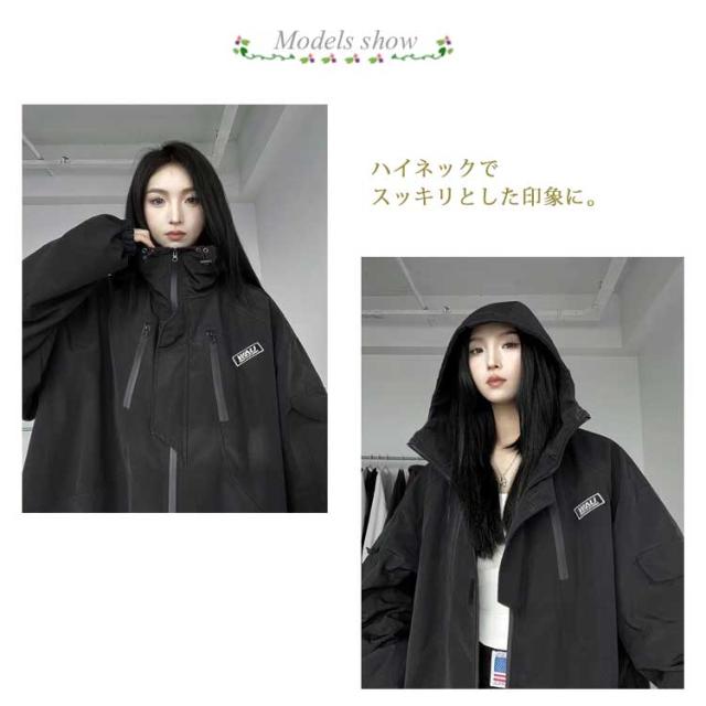 マウンテンパーカー レディース 防水 ウィンドブレーカー 大きいサイズ ハイネック ブルゾン 長袖 防寒 春 秋 アウター ジップパーカー ジャンパー ストリート系 S M L XL 2XL 3XL