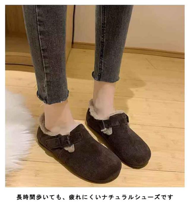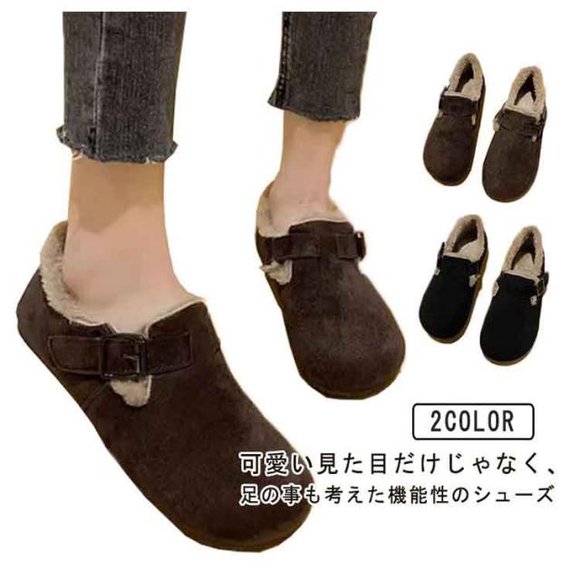 スリッポン ボア 靴 シューズ 裏起毛 あったかい 靴 レディース スリッポン かかと踏める ぺたんこ フラットシューズ コンフォート 旅行 歩きやすい 疲れない 痛くない 外反母趾 軽量 秋 暖かい 歩きやすい 可愛い 裏起毛 シンプル フラットヒール