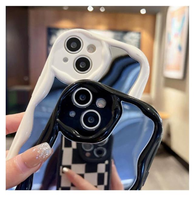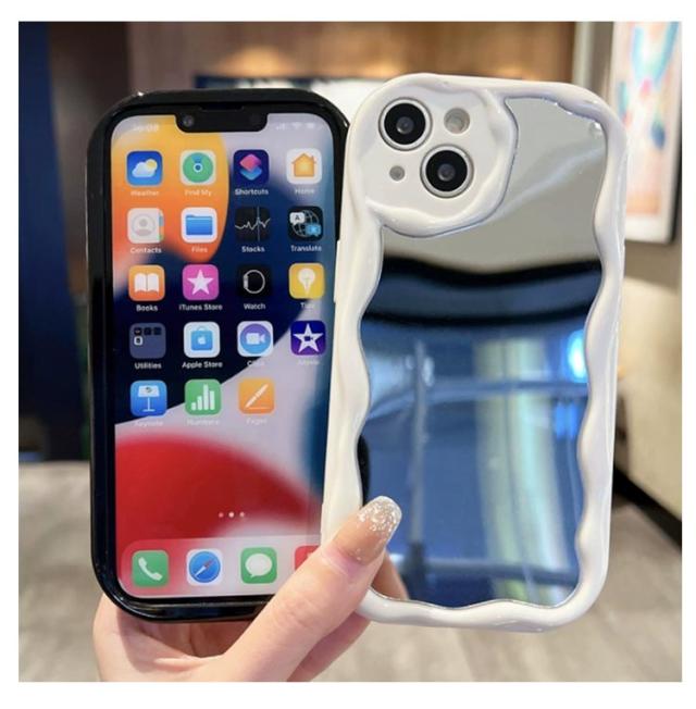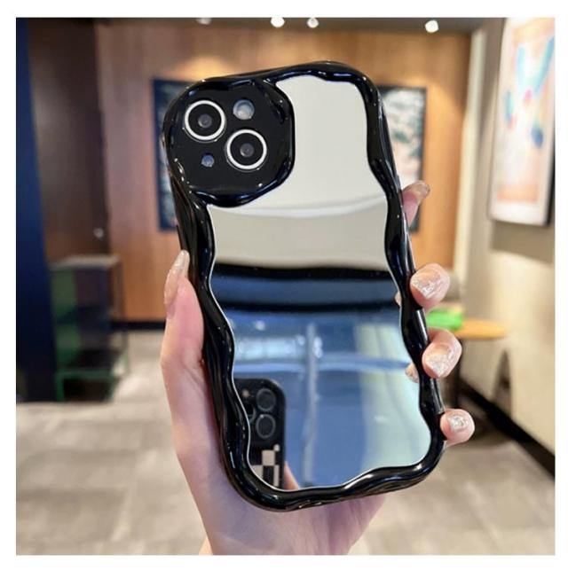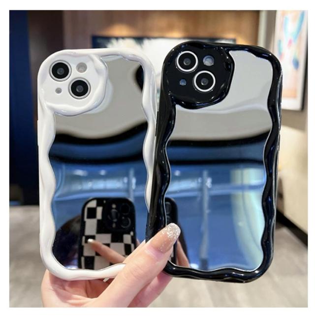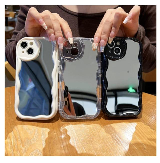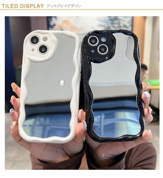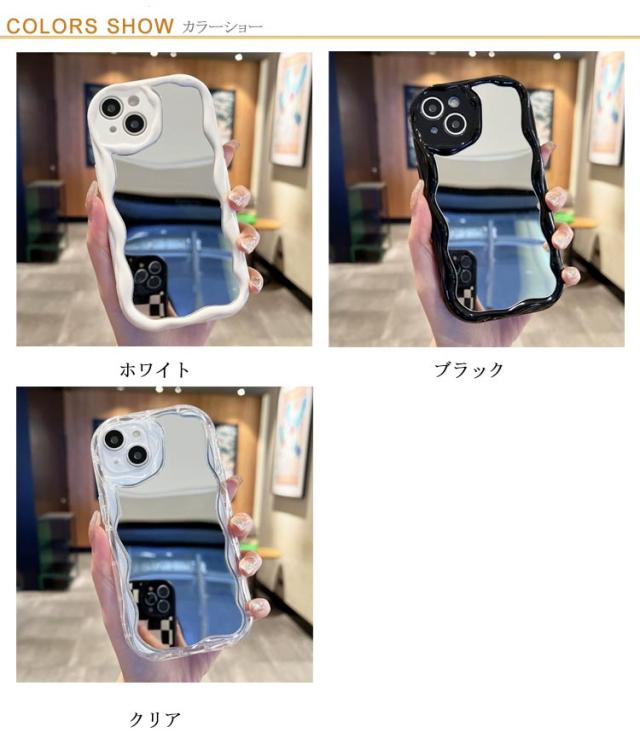 iPhone15 ケース iPhone15Pro ケース ウェーブ ミラー付き 大人かわいい iPhoneケース なみなみ iphone14 13 12 promax 鏡付き iphone 15 14 plus うねうね iphone13 13mini 12mini シリコン