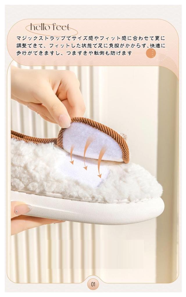 | おしゃれなかわいいシンプルデザインのルームシューズです。 足裏から保温してくれるので足元の冷え対策にぴったり。 暖かさが足を包み込み、足元のおしゃれも叶えられるのが嬉しいポイント。 マジックストラップでサイズ感やフィット感に合わせて更に調整できて、フィットした状態で足に負担がかからず、快適に歩行ができますし、つまずきや転倒も防げます。 自宅用、マタニティ用、入院用、会社用など幅広い場面でご使用ください。 | |