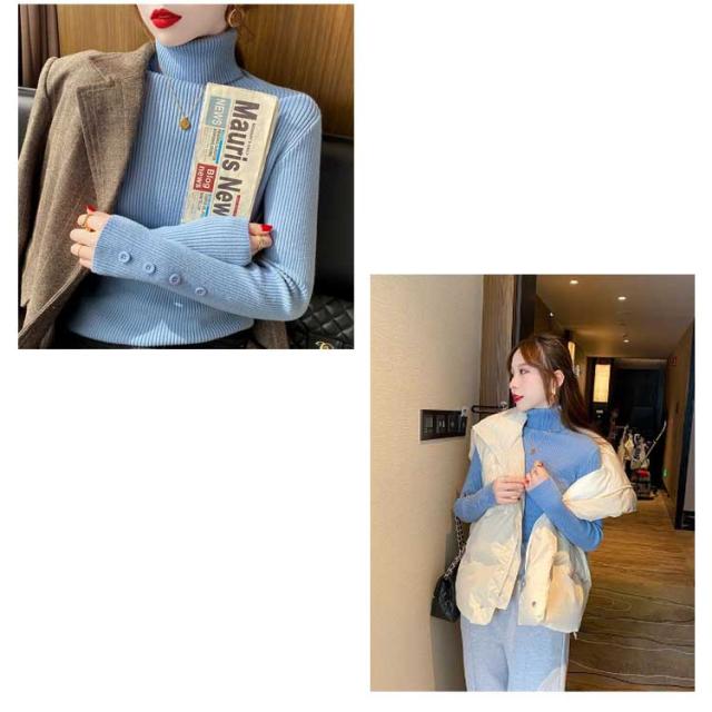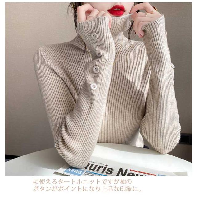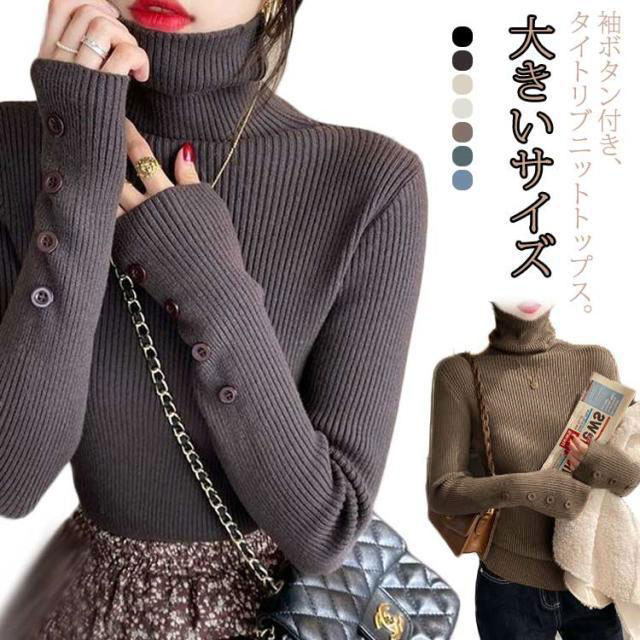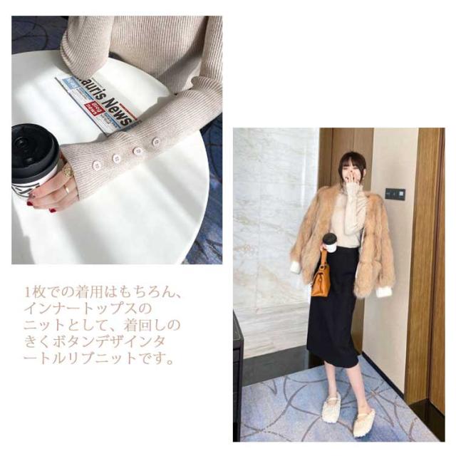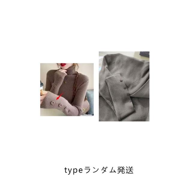 ニット トップス レディース セーター ハイネック リブニット 袖ボタン タイト 細身 ニットセーター タートルネック インナー ニット 秋 冬 あたっか 防寒 秋服 冬服 2023 きれいめ 無地 シンプル 大きいサイズ おしゃれ 30代 40代 50代 【送無】