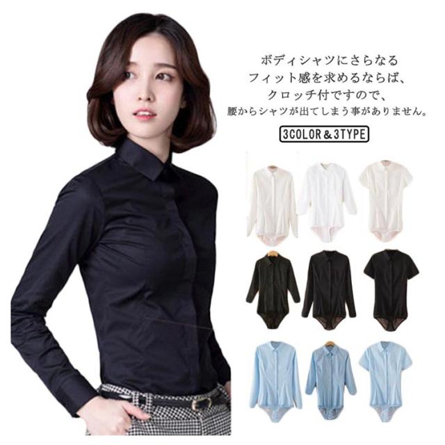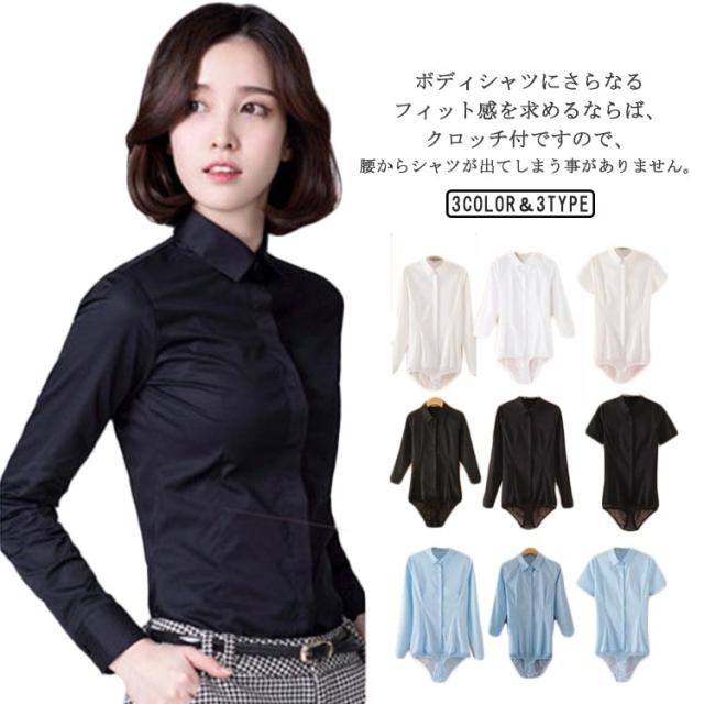 長袖&七分袖&半袖選べる!ボディシャツ レディース つなぎ 着崩れしない 白ボディーシャツ 春 秋 シャツ ブラウス ショーツ ビジネス オフィス フォーマル 上品 高級感 おしゃれ ブラック ブルー ホワイト XS S M L XL 2XL 3XL 4XL