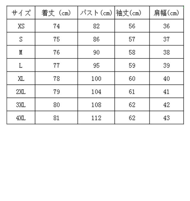 | サイズ | XS S M L XL 2XL 3XL 4XL |