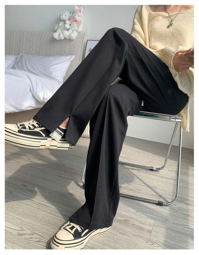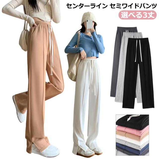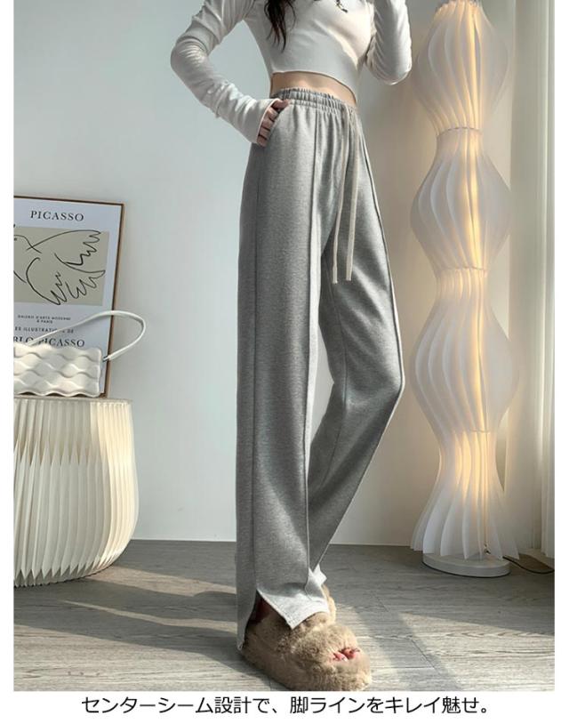スウェットパンツ セミワイドパンツ セミワイド ワイド パンツ ストレート スリット入り ロングパンツ レディース カジュアルパンツ スエット 9分丈 ブーツカット 春 秋 イージーパンツ ウェストゴム ダンス衣装 オシャレ ランニングウェア
