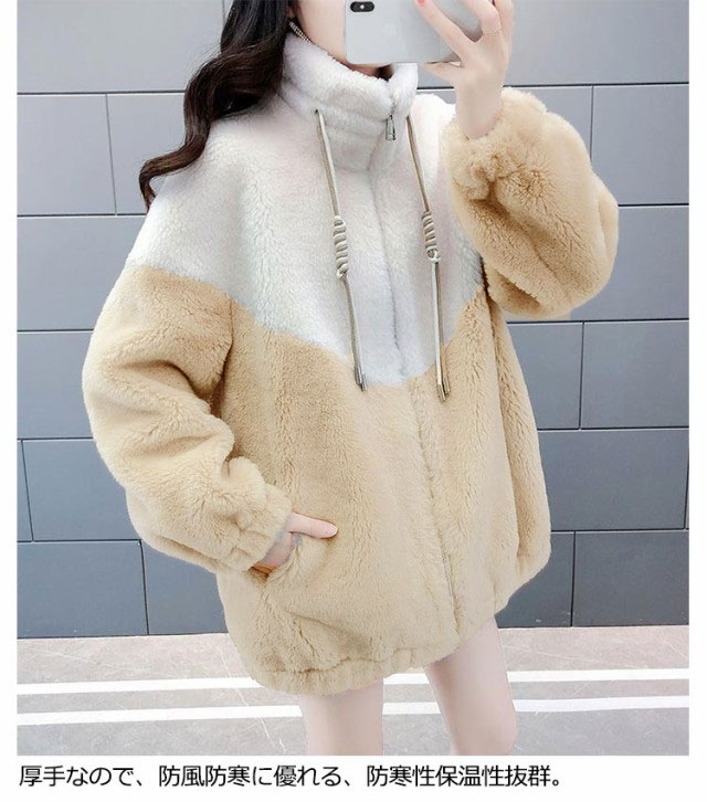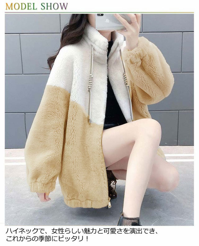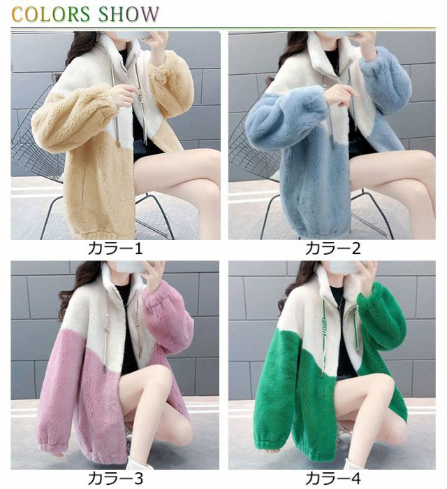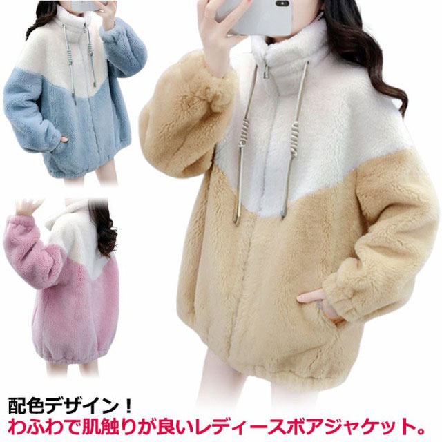 配色 ボアコート レディース ボア フリース ジャケット ボアブルゾン ジャンバー パーカー ジップアップ ボアフリース アウター スタンドカラー アウトドア 秋 冬 S M L XL 2XL 3XL