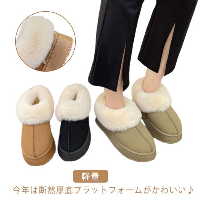 ムートンブーツ ショートブーツ 厚底 エコファー アンクルブーツ レディース プラットフォーム 暖かい ファーブーツ カジュアルシューズ 可愛い 人気 履きやすい 軽量 歩きやすい 秋冬 痛くない