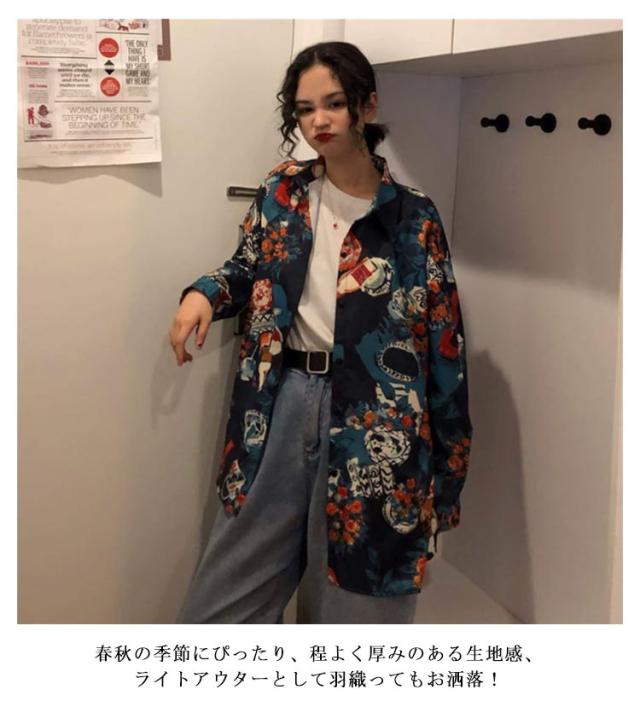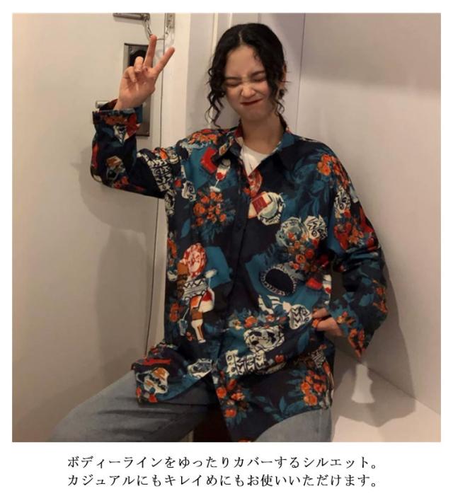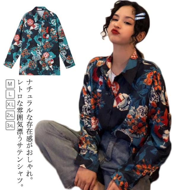 レトロ 花柄プリント サテンシャツ レディース 花柄シャツ アロハシャツ レトロ柄 長袖シャツ サテン トップス プリントシャツ カジュアルシャツ 花柄シャツ 韓国ファッション ストリート カジュアル 長袖 シャツ 韓国 服