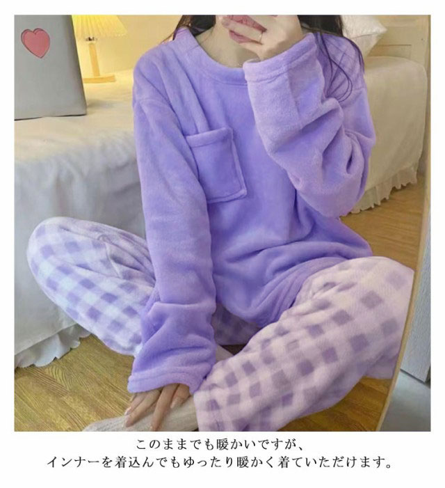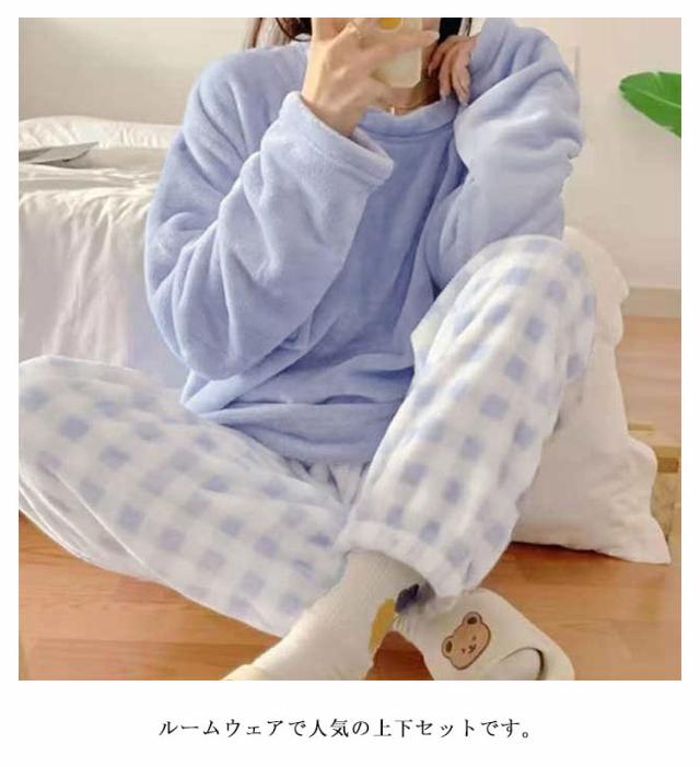 長袖 レディース ルームウェア パジャマ 秋冬 起毛 モコモコ 厚手パジャマ 大きいサイズ 寝巻き 暖かい 上下セット かわいい
