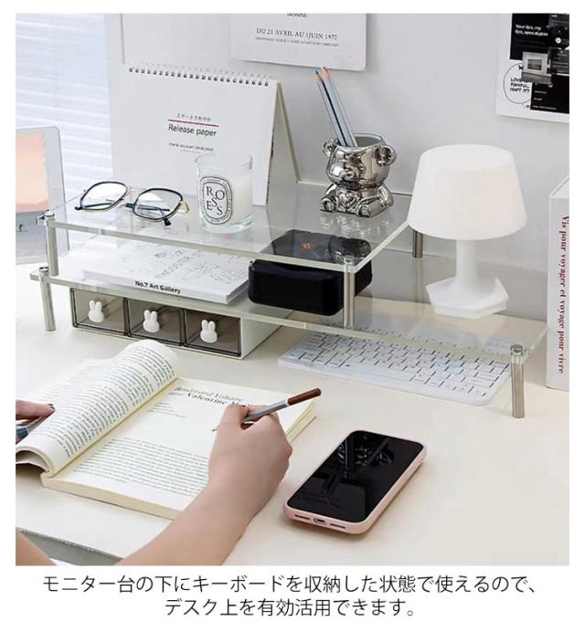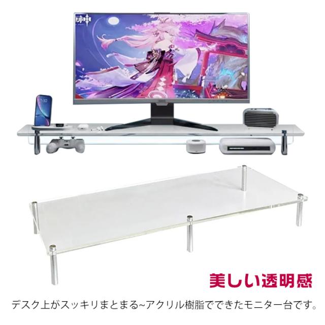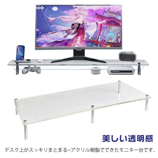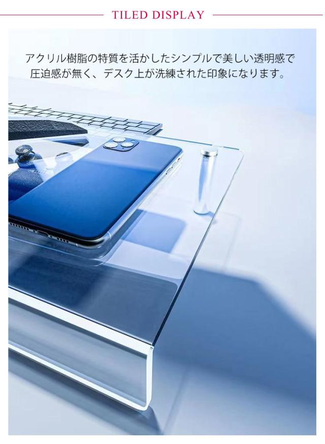 モニタースタンド モニター台 美しい透明感 モニターテーブル アクリル素材 透明 クリアー モニター台 ノートパソコン台 パソコン 電話 プリンタ 台 リモートワークにも最適 ディスプレイ 液晶モニター キーボード収納 卓上 机