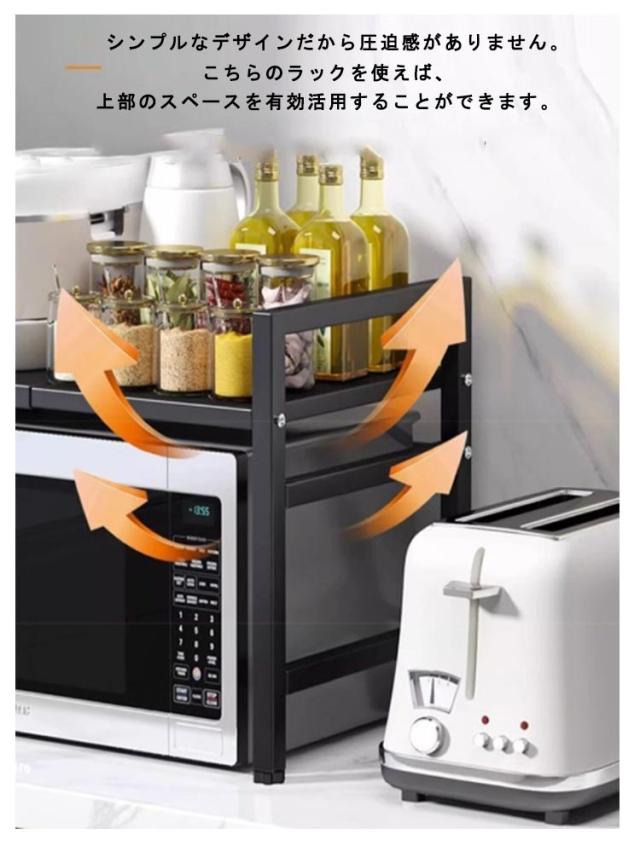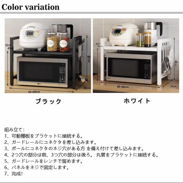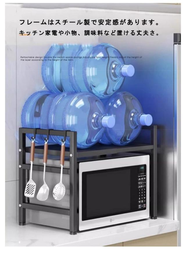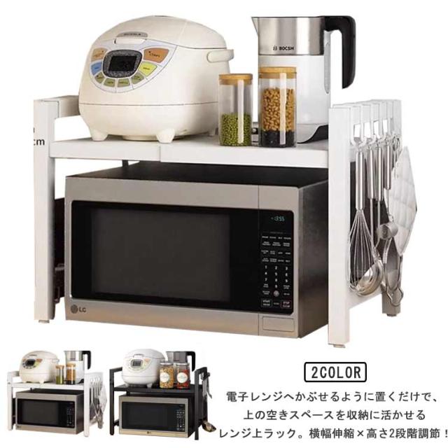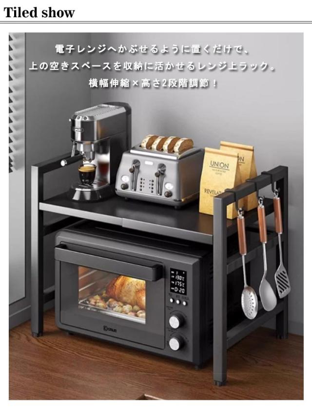レンジ上ラック レンジ上 ラック キッチンラック 伸縮 幅42〜68cm 卓上 高さ調整 フック付き トースターラック 伸縮式 レンジ台 キッチン収納棚 炊飯器ラック 調味料棚 台所棚 収納 レンジラック 組み立て簡単 シンプル おしゃれ 北欧 キッチン用品
