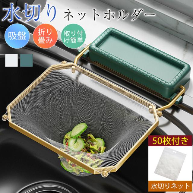 【キーワード】吸盤式 水切りネットホルダー 三角コーナーいらず 浮かせる 本体 三角コーナー 折り畳み 生ゴミ キッチンドレイン 水切りネット ネット ホルダー シンク ラック 台所 キッチン いらず ゴミ シンクコーナー ネットホルダー 水切り 取り付け簡単 省スペース ゴミ受け 生ごみ 衛生的 折りたたみ 便利 使い捨て コンパクト ふきん掛け スポンジ台 野菜 果物 新生活 50枚付き 生活 便利グッズ インテリア 汚れ ぬめり 掃除 簡単
