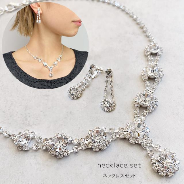 ウェディング ネックレス シルバー ネックレス レディース 大人 入学式 シンプル 結婚式 お呼ばれ パーティー ネックレス ビジュー パーティーアクセサリー イヤリング セット 大きめ 大ぶり おしゃれ ウエディング 卒業式 卒園式 入園式 ママ ドレス に 合う ジルコニア