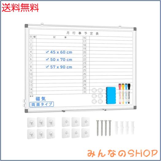 Walspax ホワイトボード 月間予定表 壁掛け 60×45cm 月予定表 カレンダー 横書き マグネット対応 マンスリーボード 両面タイプ スケジュ