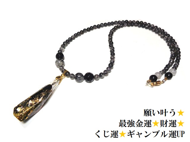 最強金運・くじ運・財運・願い叶う・ギャンブル運UP・商売繁盛★ダイヤモンド・宝石★丸玉☆ブラックルチルクォーツ★ネックレス★宝石ネックレス★オルゴナイト★丸★パワーストーン★護符(霊符)