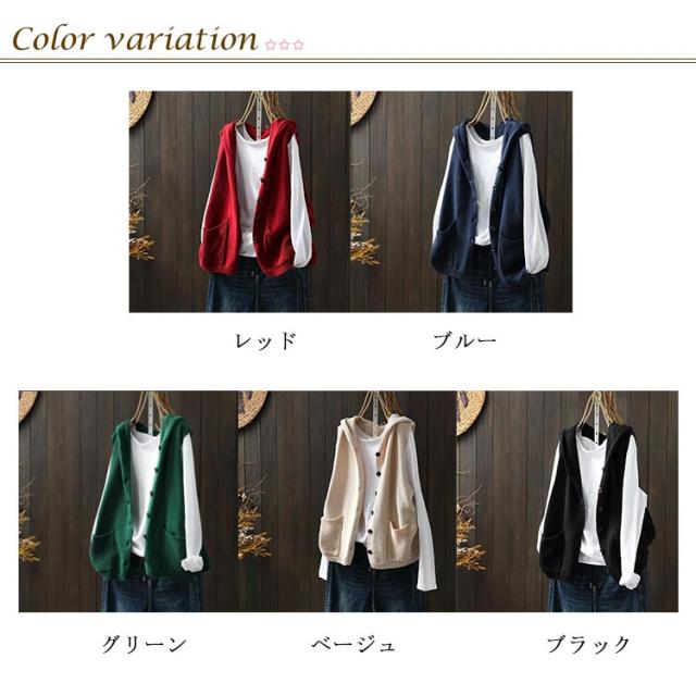 | ゆるかわで春秋に大活躍のフード付きニットカーディガンが登場。 フード付きのボタンタイプなのでほどよいカジュアル感を演出してくれます。 やみつきのニット生地で柔らかい着心地が嬉しい嬉しい。 シンプル無地タイプでパンツでもスカートでも、合わせやすく、ロングシーズン大活躍間違いなし。 デイリー使いや通勤、通学にも使える着回しがきくアイテムです。 | |