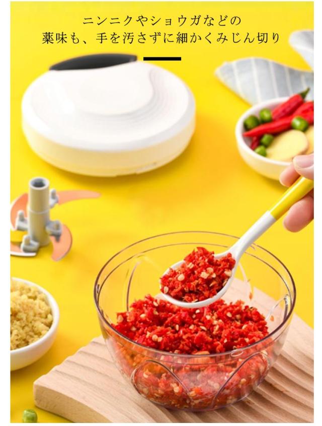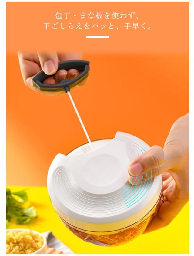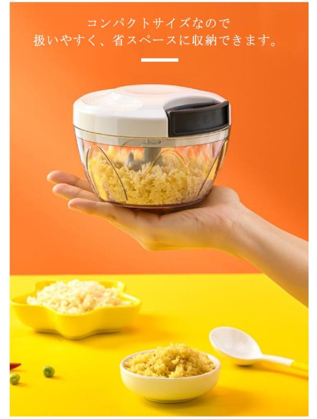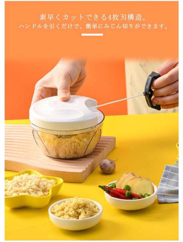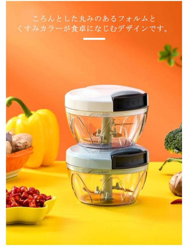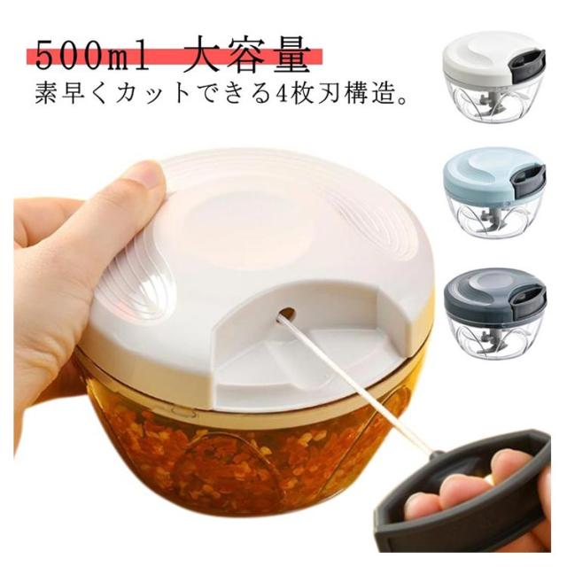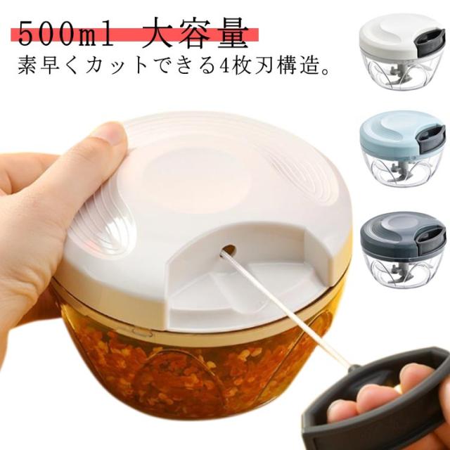 4枚刃 みじん切り器 チョッパー 手動 引っ張る みじん切り フードプロセッサー フードチョッパー プロセッサー 離乳食 玉ねぎ にんにく キャベツ 引くだけ 切る 刻む 混ぜる ハンドミキサー 下ごしらえ コンパクト 500ml 大容量 丸洗い 【送料無料】