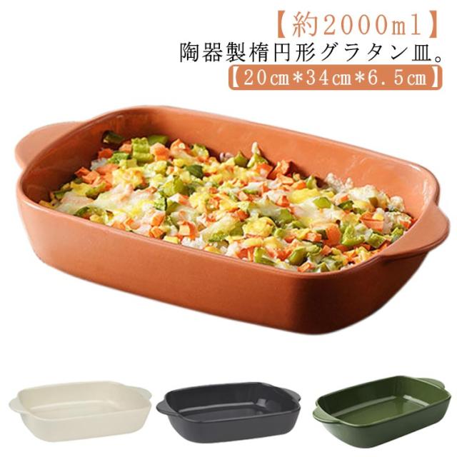 グラタン皿 大皿 34cm 約2000ml 楕円 オーバル 陶器 皿 取っ手付き 耳付 食洗機対応 グラタン皿 L 大きい 深い 耐熱 お皿 オーブン皿 オーブン料理 グリル料理 お菓子作り 焼き菓子 製菓 洋食器 電子レンジ対応 おしゃれ かわいい 【送無】