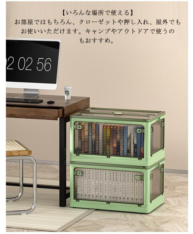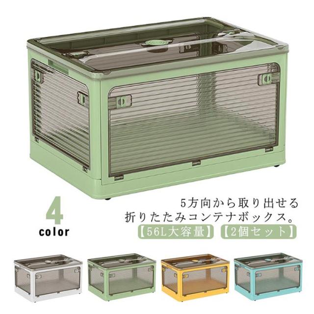 収納ボックス 折りたたみ コンテナ 56L 大容量 2個セット 5面開き コンテナボックス ふた付き 押入れ収納 クローゼット 収納ケース プラスチック 折りコン 折りたたみコンテナー キャスター付き 積重ね可能 衣装収納ボック 衣装ケース おしゃれ