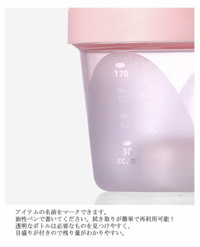| 多機能透明ボトル・長く使える。ミルクだけでなく、いろいろな小物を入れるのにもびったりです。 様々なボトル口に適応してものを出す際にこぼれません。 大きな蓋を使用してものを入れやすくします。 アイテムの名前をマークできます。油性ペンで書いてください。拭き取りが簡単で再利用可能! 回転を組み合わせた方式を採用してとても便利です。 透明なボトルは必要なものを見つけやすく、目盛りが付きので残り量がわかりやすい。 赤ちゃん連れのお母さんにオススメ!夜間や外出などぴったり! 事前に必要な量を用意して気軽に進めましょう。 | |