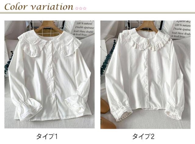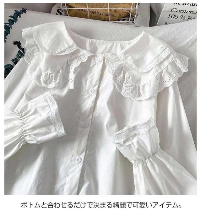 ビッグカラー 長袖 ブラウス フリル 可愛い 丸襟ブラウス ロリター 白シャツ レディース トップス 春服 秋服 ホワイト ガールズ ガーリー かわいい