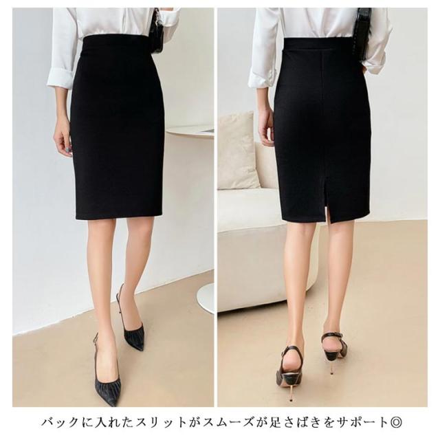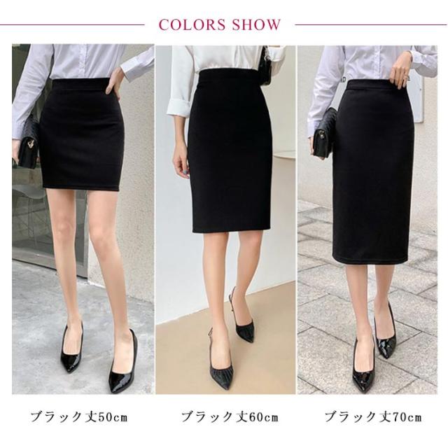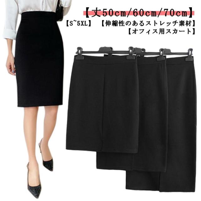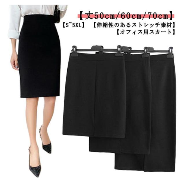 オフィス 事務服 スカート レディース タイトスカート ウエストゴム ストレッチ 通勤 オフィス OL スーツ 制服 フォーマルスカート ボトム 洗える ビジネス 大きいサイズ スリット セレモニー 春 夏 秋 冬 オールシーズン ブラック 50cm 60cm 70cm丈