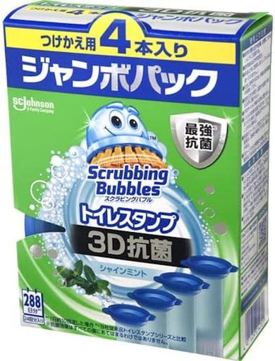 トイレ掃除 トイレ洗剤 スクラビングバブル トイレスタンプ 3D抗菌 2本入り 38G×4本 24スタンプ分 シャインミントの香り 付け替え用 まとめ買い 洗浄剤 黒ずみ 消臭 プレミアム