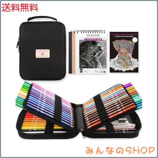 HIFORNY 80色鉛筆セット 大人用 塗り絵 72色 3色のスケッチブック付き 大人用塗り絵 シャープペンシル 0.5 無色ブレンダー