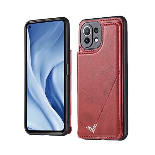 【 Antimam 】背面カード 手帳型ケース Xiaomi Mi 11 Lite 4G/5G 対応 XIAOMI マホバック?カバー( レッド) 手作り お洒落シンプル 軽量