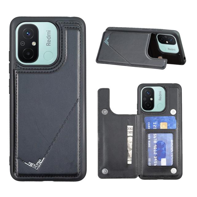 【 Antimam 】背面カード 手帳型ケース Xiaomi Redmi 12C/Redmi 11A/Poco C55 対応 XIAOMI スマホバック?カバー( ブラック )手作り お
