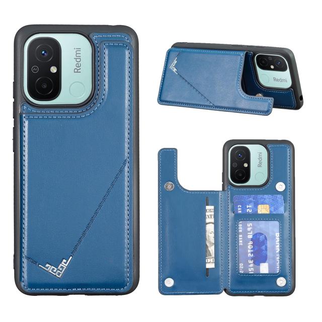 【 Antimam 】背面カード 手帳型ケース Xiaomi Redmi 12C/Redmi 11A/Poco C55 対応 XIAOMI スマホバック?カバー(ネイビーブルー)手作り