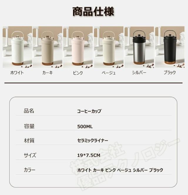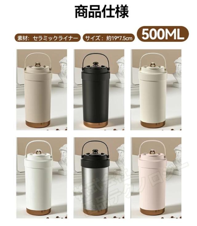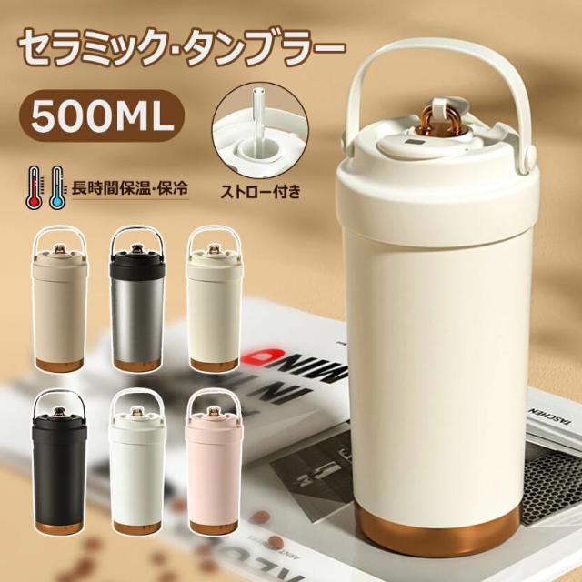 タンブラー セラミックタンブラー500ML 二重構造 保温携帯コーヒーカップ おしゃれ 溢れにくい 魔法瓶 保冷 耐熱 蓋付き 直接ドリップ 真空断熱