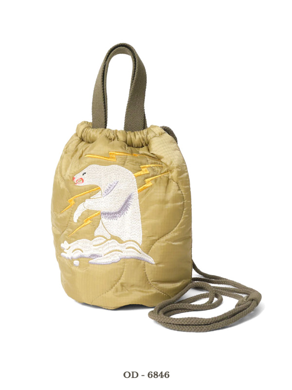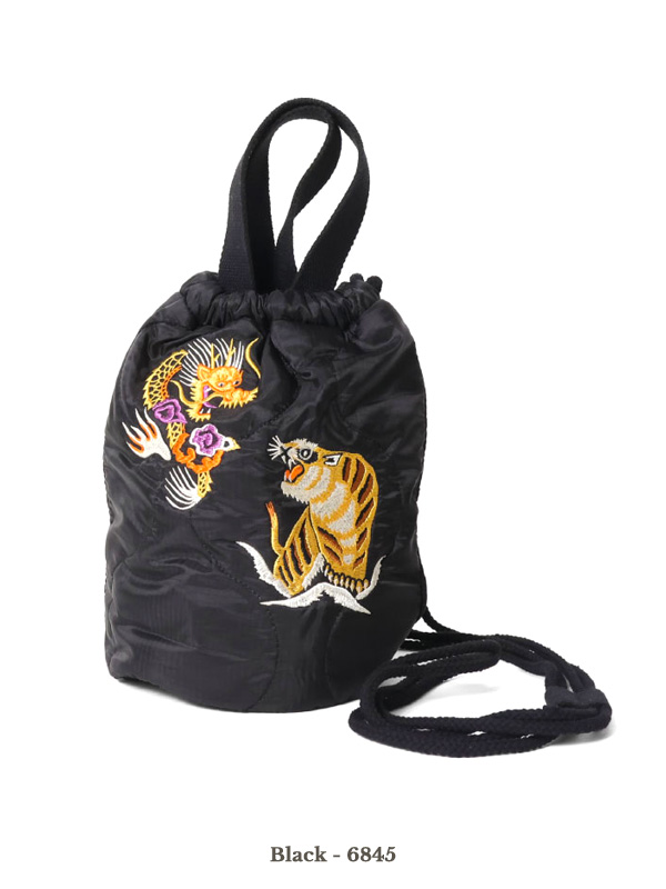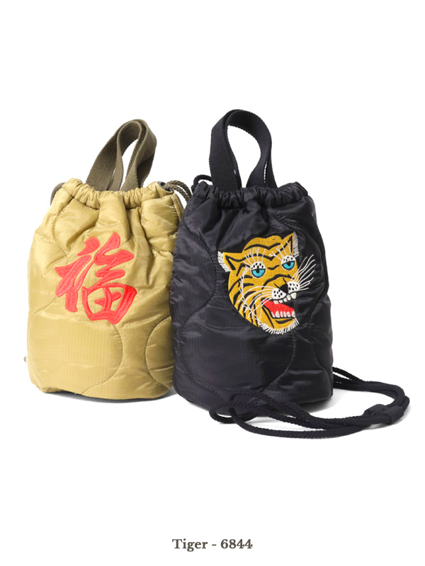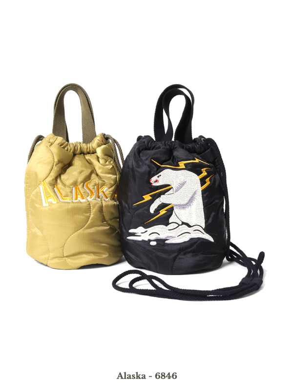 HOUSTON ヒューストン バッグ 巾着バッグ メンズ レディ—ス おしゃれ かっこいい かわいい 刺繍入り タイガー マップ アラスカ EMB QUILTING EFECT BAG 6845 6844 6846