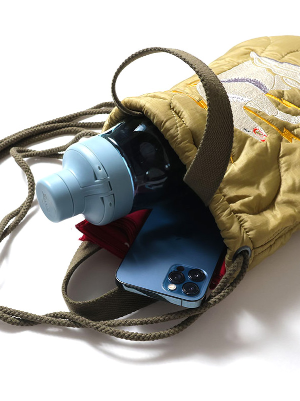 HOUSTON ヒューストン 刺繍 キルティング 巾着 バッグ ●送料無料 手提げ、肩掛けも可能な2WAY仕様で、ちょっとした荷物を入れるのに最適なサイズです。