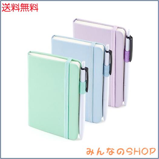 Feela Pocket Notebook Journals、ミニ キュート スモール ハードカバー カレッジ 罫線入りメモ帳 オフィス用品、ブラックペン3本付き、3.5インチ x 5.5インチ、3本パック、A6、パステルカラー、ライトブルー、ライトパープル、ライトグリーン。