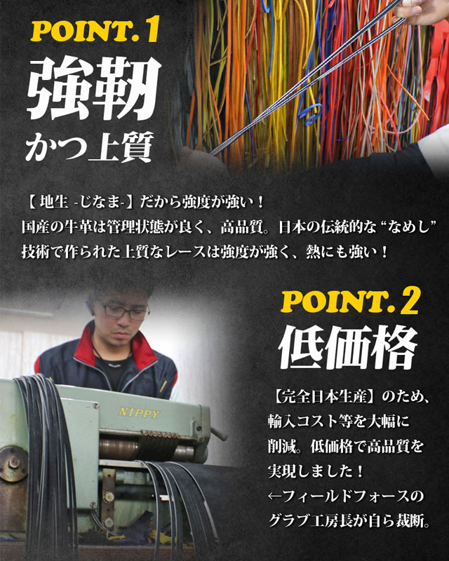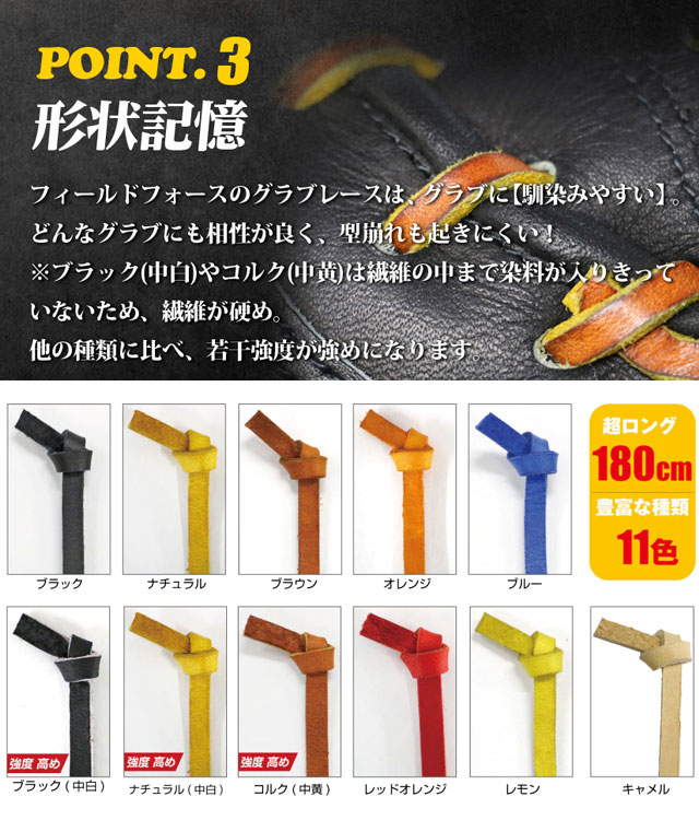 フィールドフォース グラブレース 天然皮革 東京なめし 超ロング180cm 全11色 革紐 替え紐 FGR-180