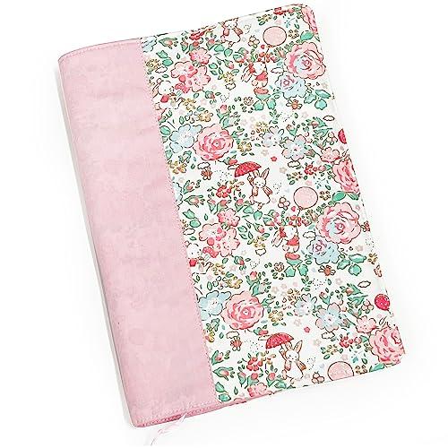 Kuai ブックカバー A5サイズ 調整可能 44.5×22.5cm アンティーク ヴィンテージ 花柄 おしゃれ (ピンクウサギ)
